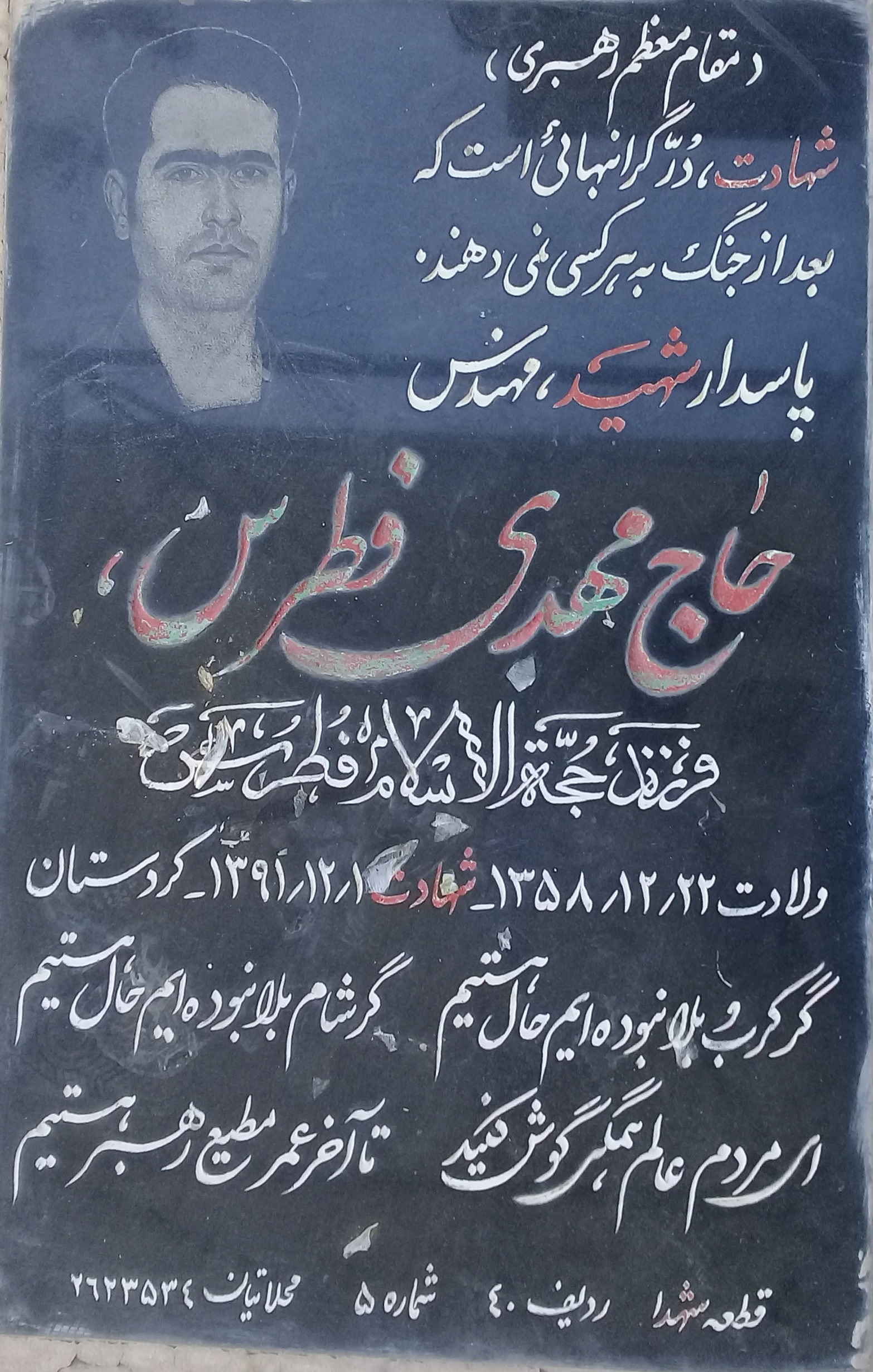 قدری که گذشت، مسئول بنیاد شهید هم آمد گفت: آقای فطرس! آقا مهدی، فرزند شماست؟ گفتم بله، خیر است. گفت: ناراحت نباش پایش تیر خورده! شک کردم. گفتم الان که جنگ نیست. بعد گفتند هر دو پایش تیر خورده. اما چند دقیقه بعد اصل خبر را گفتند. واقعا تلخ ترین ساعات عمرم بود که گفتند دو پایش تیر خورده است اما وقتی فهمیدم مهدی شهید شده، مثل اینکه آب سردی روی سرم ریختند و از آن حالت اضطراب نجات پیدا کردم و گفتم انالله و انا الیه راجعون.»